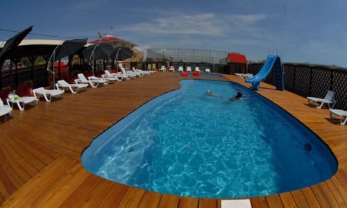 Два бассейна на территории, наполненные морской водой. Собственное летнее кафе и ресторан, а так же столовая. На территории теннисный корт и волейбольная площадка.